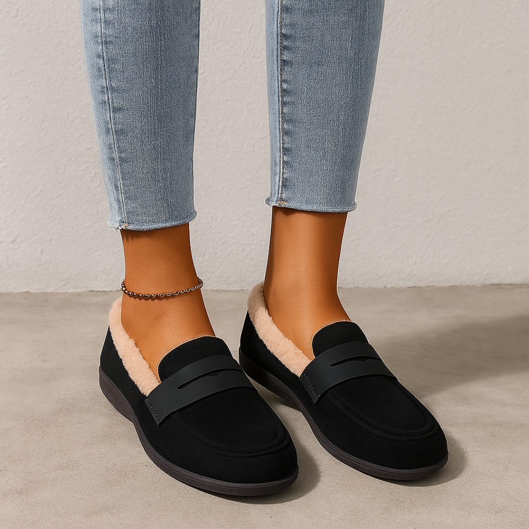 Entdecke den Komfort und Stil unserer winterlichen Mokassins mit Kunstfellfutter. Gefertigt aus weichem Wildledermaterial bieten sie eine bequeme und warme Passform – ideal für kalte Tage. Das flauschige Innenfutter in Wolloptik umhüllt den Fuß mit wohliger Wärme, während die flexible Sohle für Stabilität und Komfort bei jedem Schritt sorgt.